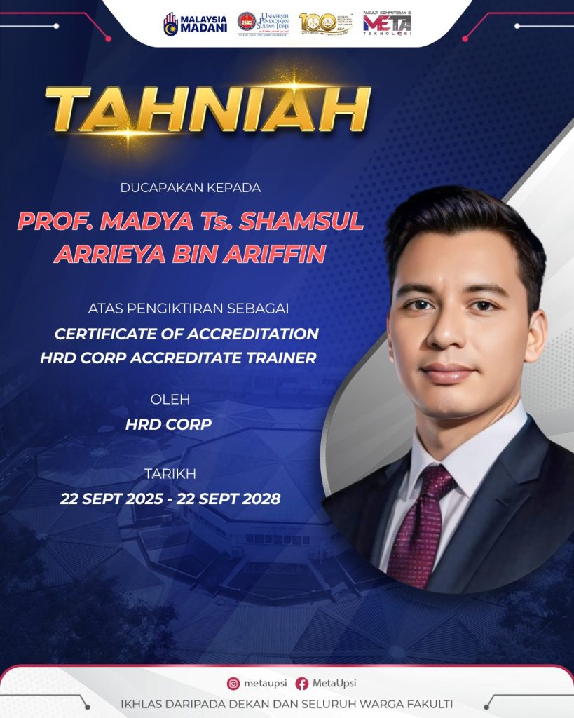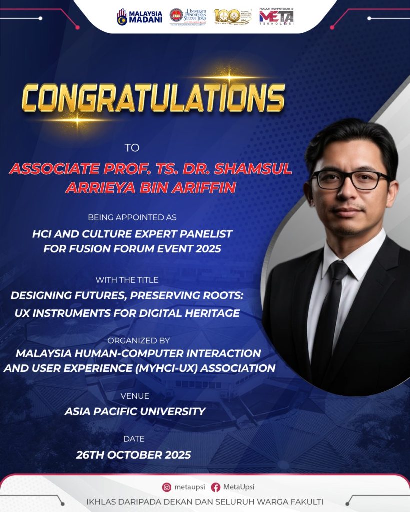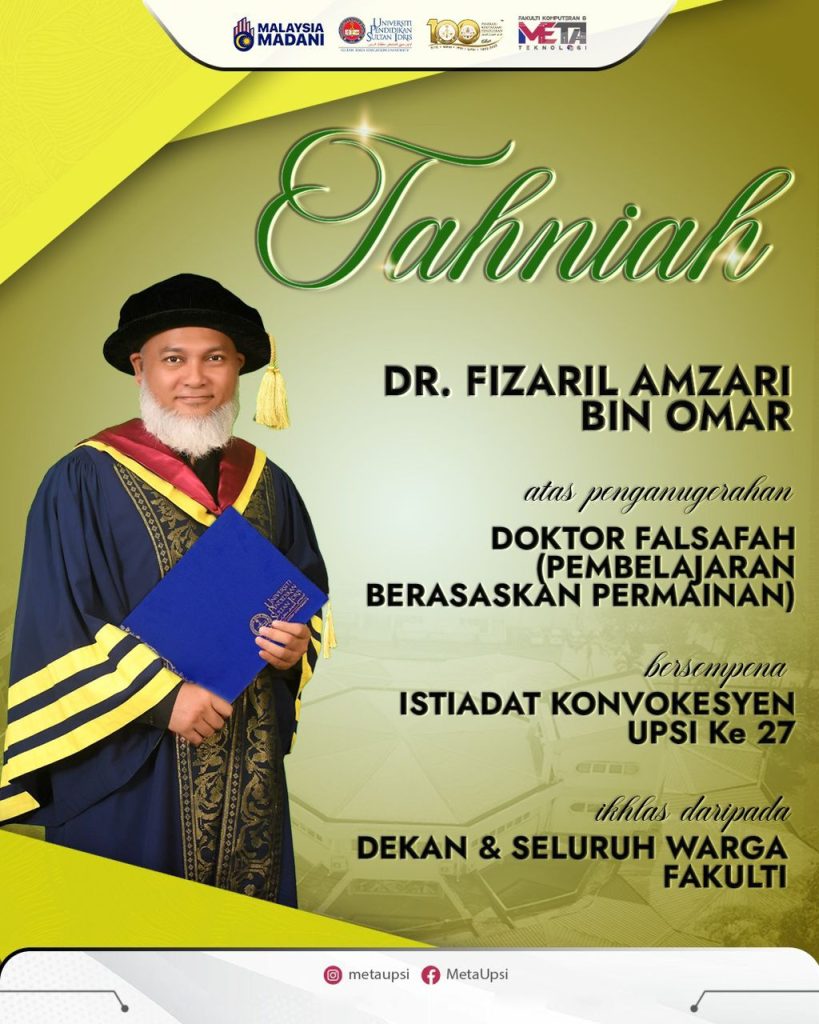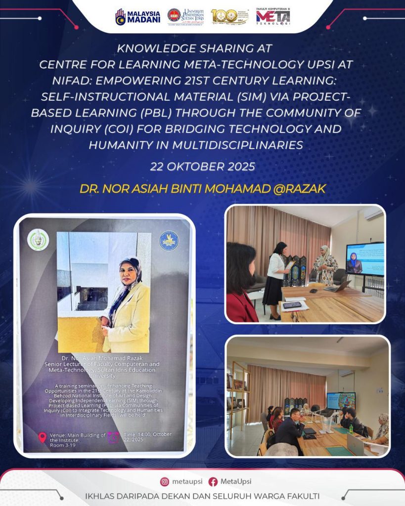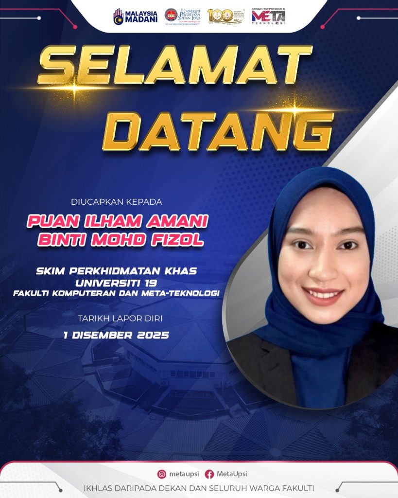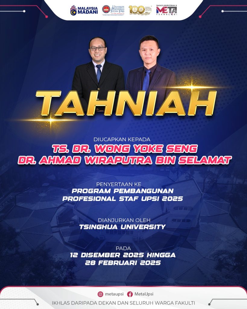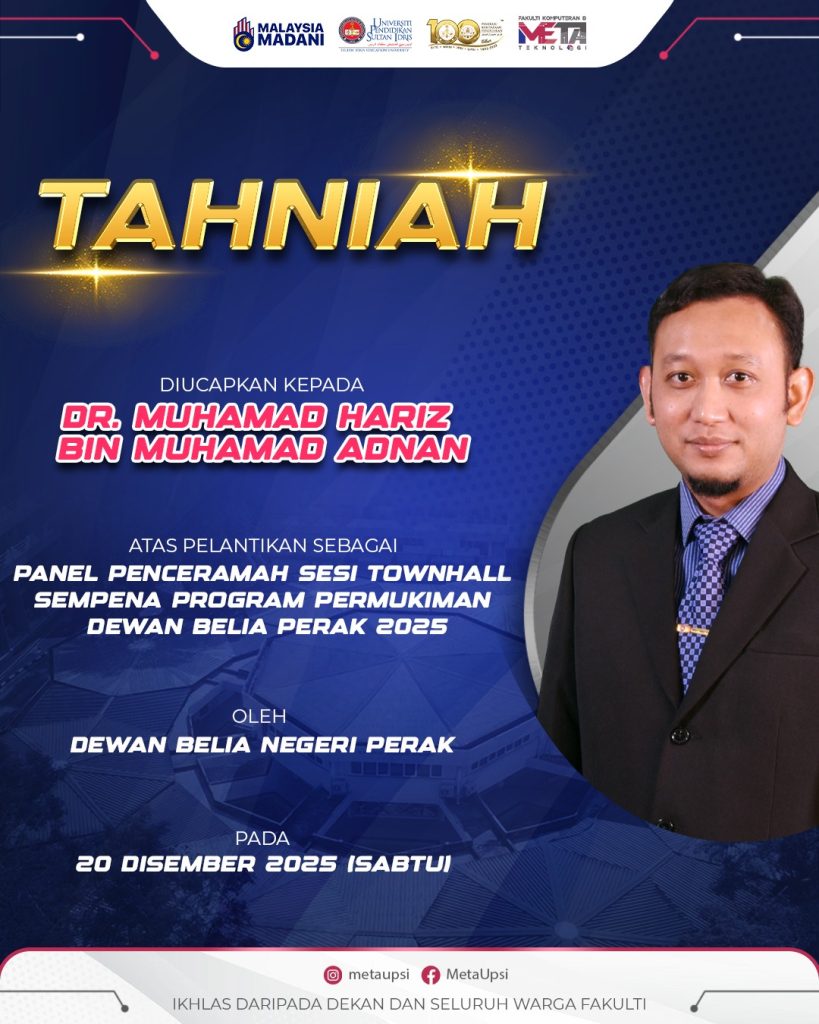 Tempat: Blok 9, Fakulti Pembangunan Manusia, UPSI